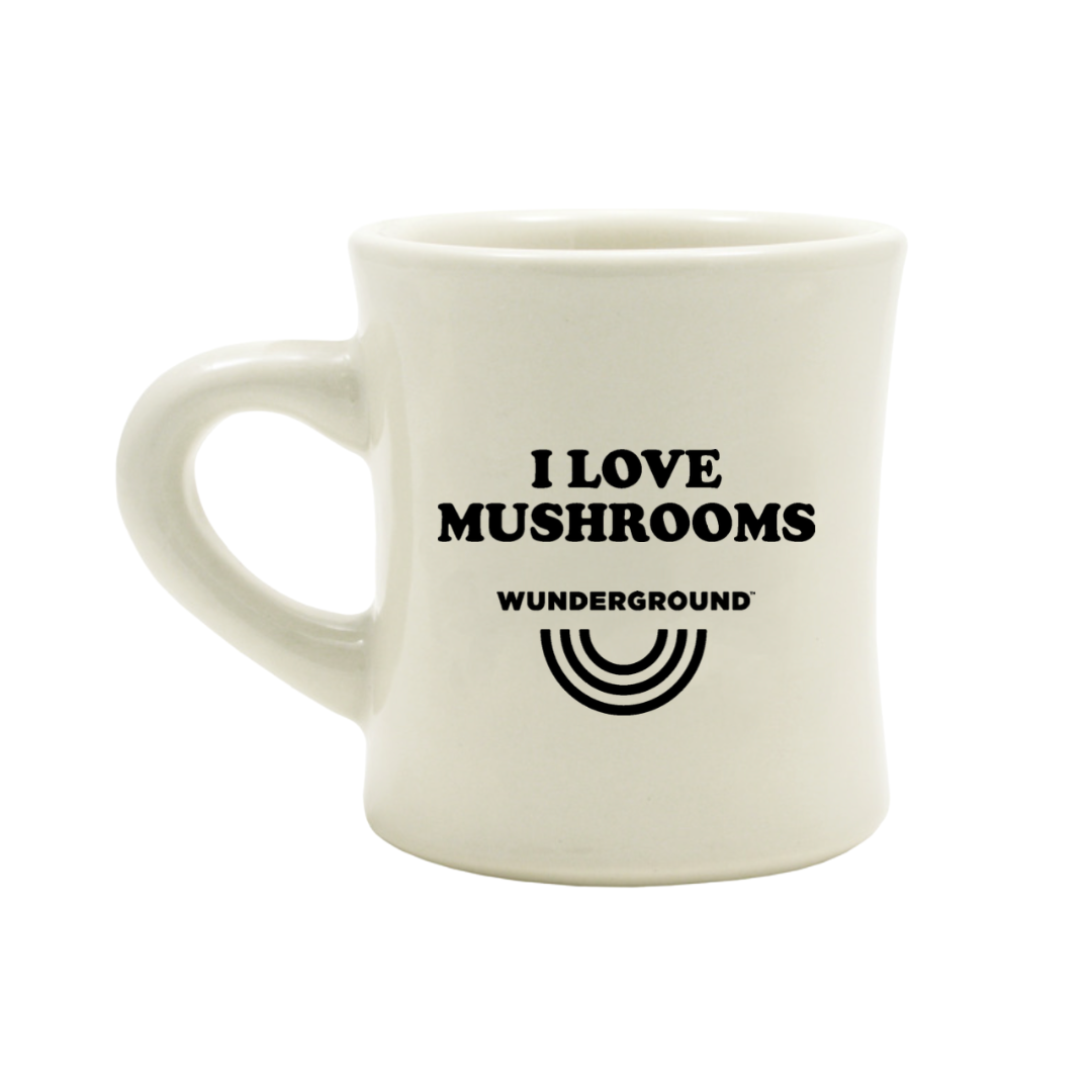 Step into a world of nostalgia with the Wunderground Diner Mug, a perfect addition to your coffee ritual. This classic 10oz ceramic mug features our beloved friend Mr. Mushy front and center, radiating joy and whimsy with every sip. On the back, a playful nod to our mushroom-loving community reads “Friend of the Fungi,” or "I Love Mushrooms" perched above the iconic Wunderground logo.