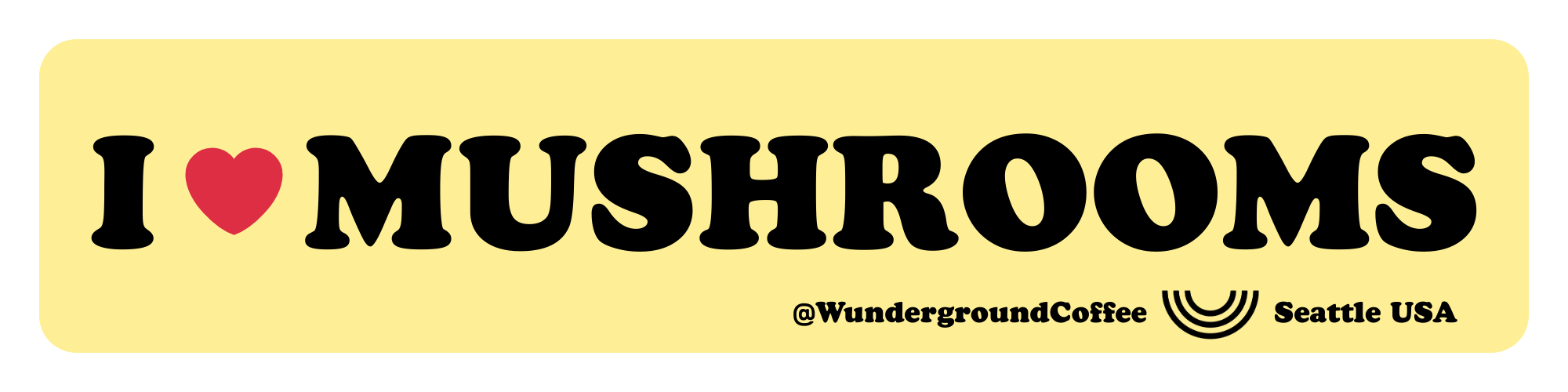 Proclaim you love of the fungi with our "I Love Mushrooms" bumper sticker. Printed on thick, durable vinyl to protect from scratches, water & sunlight. Available in four distinct Wunderground colors; black, blue, pink and yellow.